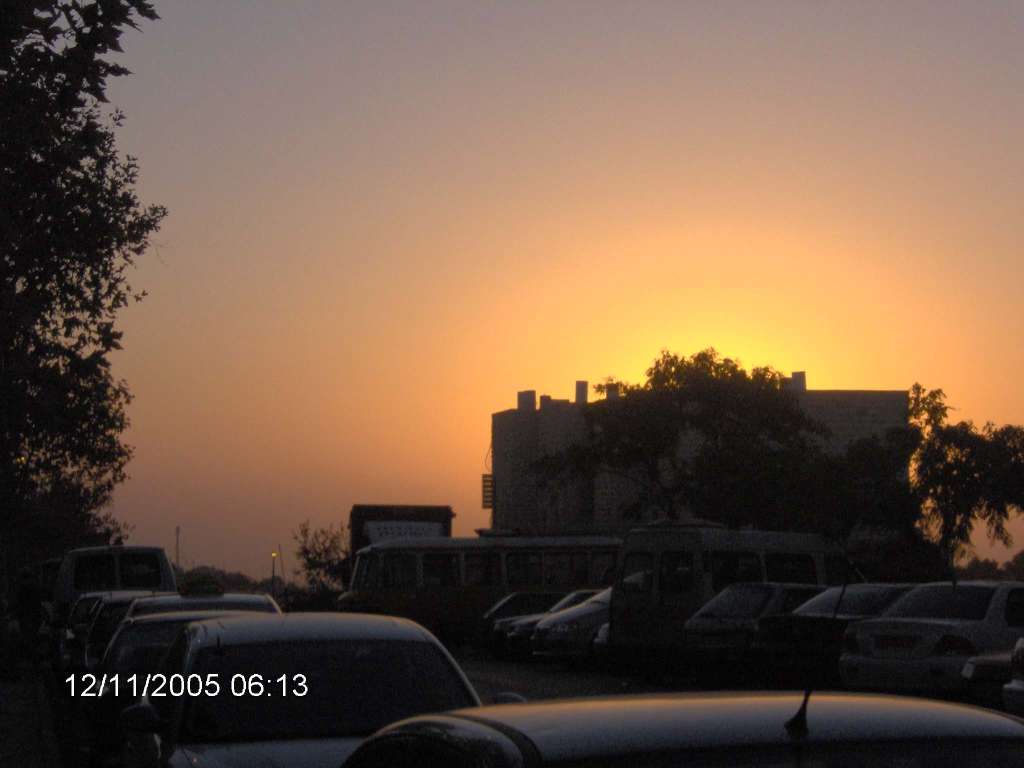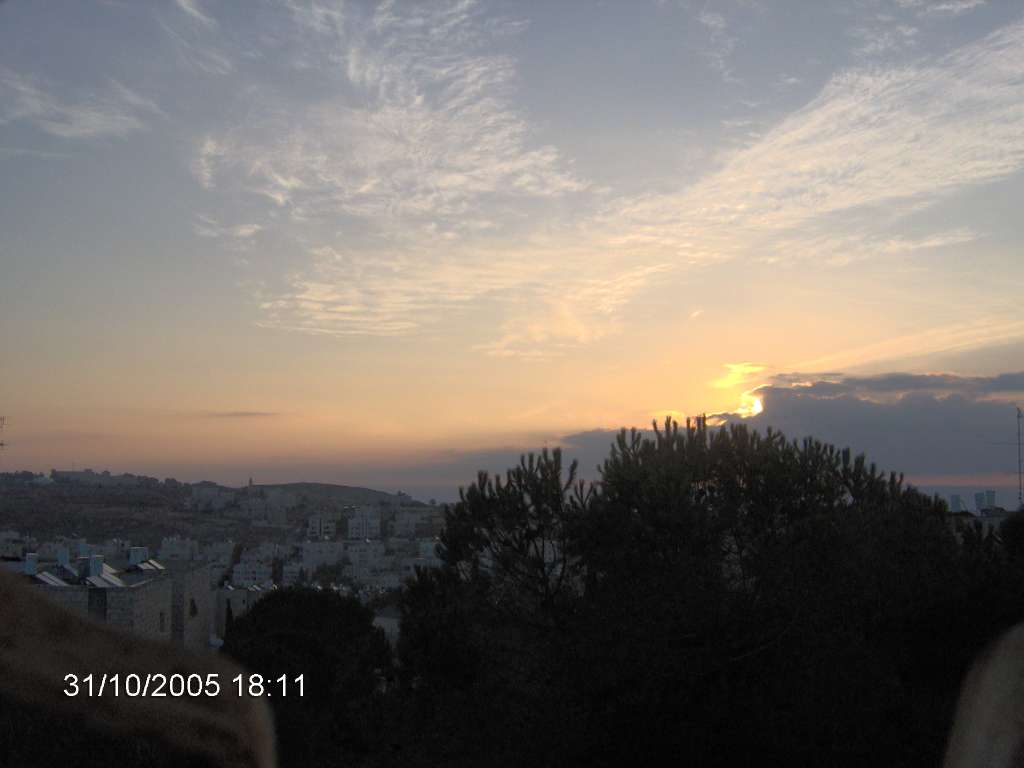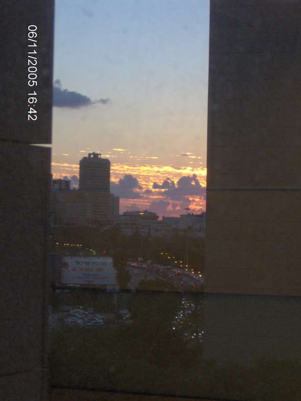 16:42. Закат над Тель-Авивом из окна соседнего отсека.