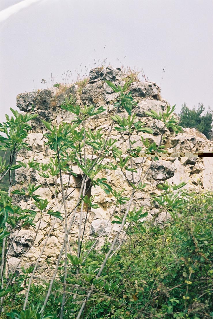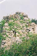 A view to the top of the mountain and a piece of ancient installation, probably a terrace wall.