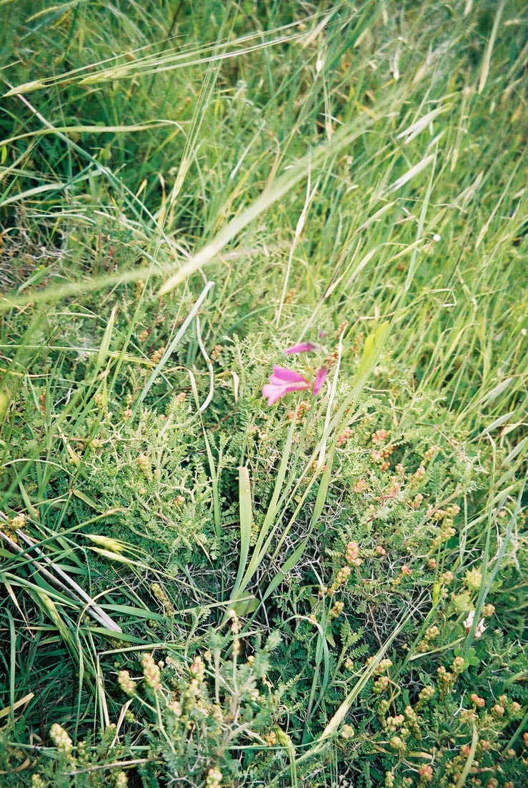 Red flowers and barbed wire – the dominant flora.